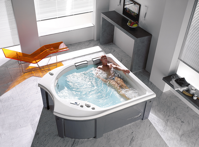 Für den privaten Badebereich gibt es das Komfortbad mit allen Massageanlagen. Dazu zählen Masterjet-Düsen als kräftige Rückenmassagedüsen mit voluminösem Schwall oder ein ganzer Sitzplatz bestückt mit Minijets. Es gibt Massagemöglichkeiten inklusive einem kraftvollen Bodengeysir, die man sonst nur aus dem portable Spa Bereich kannte.